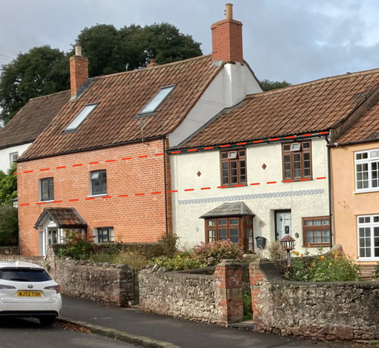 the adjoining house on the left (No.51) as part of a 'hall house', but